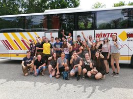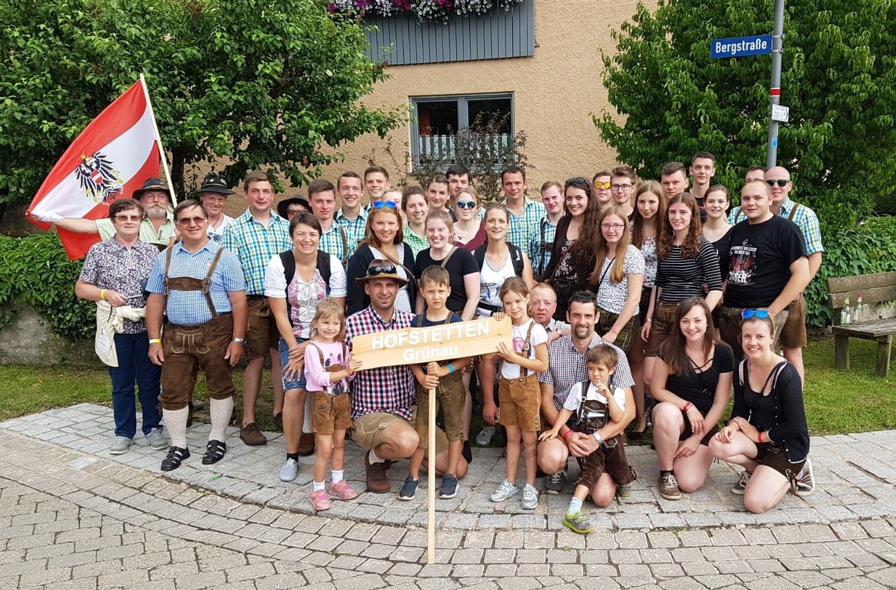 "Hofstettner Jungs, Hofstettner Jungs, wir sind alle Hofstettner Jungs..." Unser diesjähriger Sprengelausflug führte uns heuer auf das mittlerweile 18. internationale Hofstettentreffen nach Hofstetten Hilpoltstein in Deutschland. Gemeinsam mit vielen anderen Hofstettnern aus Deutschland und der Schweiz wurden drei Tage lang verschiedene Aktivitäten durchgeführt, Freundschaften geschlossen und gepflegt sowie natürlich miteinander gefeiert! Am Freitag, 21. Juni ging es bereits frühmorgens los, denn auf dem Weg nach Hilpoltstein wurde ein Zwischenstopp in München eingelegt. Wir besichtigten die Bavaria Filmstadt, wo beispielsweise Filme wie "Wickie und die starken Männer", "Asterix und Obelix" oder "Fack ju Göhte 3" gedreht wurden. Neben dem 4D-Kino und einer spannenden Führung durften wir selbst vier kurze Filme drehen. Danach ging es weiter nach Hilpoltstein, wo wir freudig erwartet und willkommen geheißen wurden. Nach einer kurzen Begrüßung wurde abends zur Musik der "Störzelbacher" gefeiert. Die Stimmung war grandios und bald stand jedermann auf den Heurigentischen. Am Samstag waren sportliche Aktivitäten geplant. Wir beteiligten uns mit einem Team am Fußballturnier, außerdem machten zwei Teams beim Riesenwuzzlerturnier mit. Der Spaß stand natürlich im Vordergrund und kam auch nicht zu kurz. Am Abend standen schließlich der Sternmarsch, die Siegerehrung der Turniere sowie ein Heimatabend am Programm. Dort zeigten verschiedene Plattlergruppen, eine Hiphop- und eine Tanzgruppe ihr Können. Auch unsere Plattlerbuam hatten eine kurze Einlage vorbereitet. Der Sonntag startete mit einer Heiligen Messe. Bald darauf folgte die offizielle Verabschiedung. denn viele Hofstettner hatten ja - wie auch wir - noch einen langen Heimweg vor sich. Wir können auf ein tolles, lustiges, unvergessliches Wochenende voller Spaß, Musik, Gaudi, alter und neuer Freundschaften zurückblicken. Einmal Hofstetten, immer Hofstetten! - Wir sehen uns 2021 in Hofstetten Eichstätt!