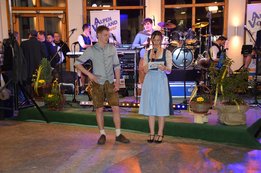 Nach der Begrüßung übernahm schließlich unsere Musikgruppe "AlpenVorlandPower" das Mikrofon und es hieß "Alles Walzer!" Wer vom Tanzen durstig wurde, konnte sich von unseren Mitgliedern im 1. Stock in der Regionalbar eine Erfrischung holen - dabei legten wir natürlich einen Wert auf heimische Produkte, egal ob beim Schnaps, Likör, Cider oder Wein. Da war wohl für jeden was dabei!