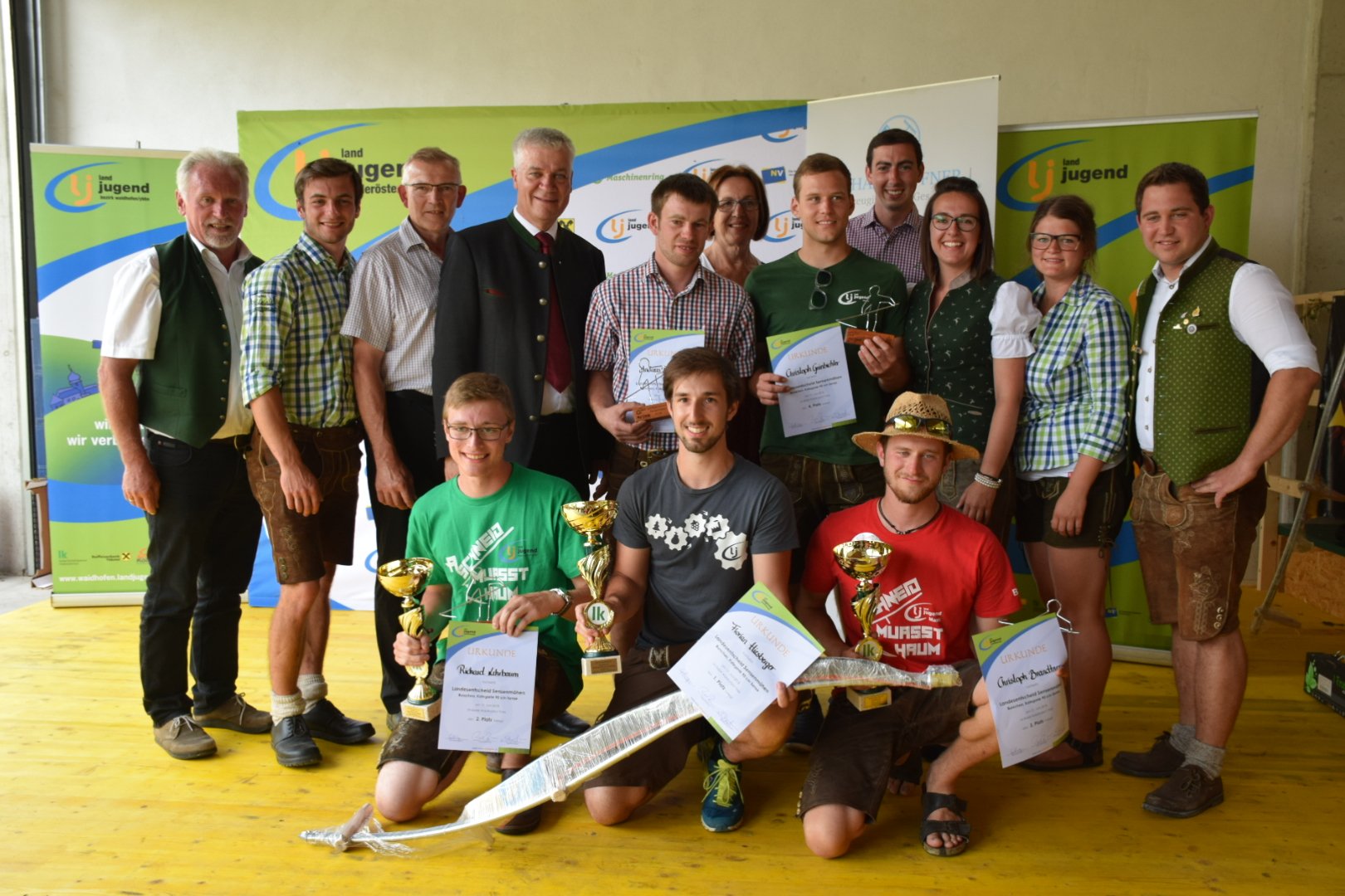 Beim Landesentscheid waren auch wieder einige Teilnehmer und Teilnehmerinnen aus unserem LJ Bezirk Kirchberg/P. dabei. Wir gratulieren recht herzliche zu den Platzierungen! Zahlreiche Besucher bestaunten die Mähkünste der 76 Mäher und Mäherinnen. Die Vorbereitungen für den Landesentscheid beginnen bei den Wettbewerbsteilnehmern schon ab dem ersten Schnitt. Von da an wird wöchentlich mehrmals trainiert und nach Möglichkeit auf Wettbewerbe gefahren. Neben dem Ziel, die Parzelle in möglichst schneller Zeit zu mähen, bewertet die fachkundige Jury auch die Sauberkeit der Mahd mit Noten von sehr gut bis sehr schlecht. Die Felder messen von 10 x 10m bis 5 x 5m, je nach Kategorie. Bei den Herren bewies Robert Steigenberger als bester Mäher eine Zeit am 10 x 10 m Feld von 2:30 Minuten. Lisa Gruber setzte mit 1:29 Minuten am 5 x 7m Feld die Messlatte bei den Damen. Beim Landesentscheid wurde auch heuer wieder die Möglichkeit geboten, mit einer bis zu 90cm langen Sense mit zu mähen. 38 Teilnehmerinnen und Teilnehmer nutzten diese Chance und mähten ihr 8x8 m, bzw. bei den Damen 5 x 5 m großes Feld in herausragenden Zeiten. Florian Hiesberger und Bianca Steinauer zeigten dabei Top Leistungen und sicherten sich die ersten Plätze. Unsere Platzierungen im LJ Bezirk Kirchberg/Pielach: