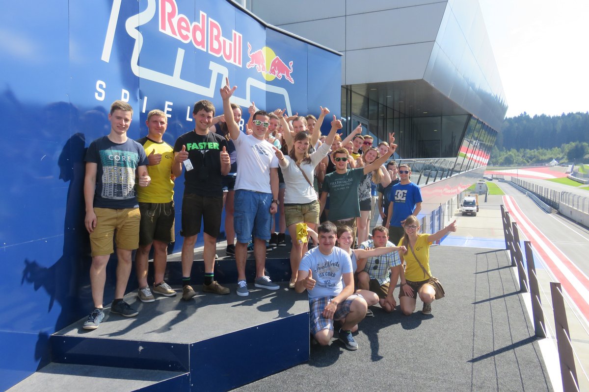 Los ging die Reise am Freitag, dem 08. Juli. Während der Hinfahrt machten wir Zwischenstopp am Red Bull Ring in Spielberg. Dort wurden wir am riesigen Gelände herumgeführt und durften danach selbst ein Gokart-Rennen fahren. Nach einem leckeren Mittagessen ging unsere Reise weiter zur Hirter Brauerei. Auch dort hatten wir eine sehr interessante Führung. Wir haben sowohl erfahren, wie Bier gebraut wird und durften schließlich auch welches verkosten. Gegen Abend kamen wir dann in unserem Quartier an. Die meisten sprangen sofort in den noch immer 25°C warmen Klopeiner See. Abendprogramm war das Fest "See in Flammen", das mit seinen vielen Ständen rund um den See, Livemusik und einem großen Feuerwerk viele Touristen anzieht.