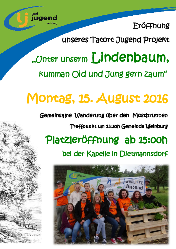 Dieses Jahr entschied wir uns, die Lj Weinburg für ein Tatort Jugend Projekt. Unsere diesjährige Aufgabe erhielten wir von unserem Bürgermeister Peter Kalteis: Die Gestaltung des Paltzerl am Rundwanderweg in Dietmannsdorf.