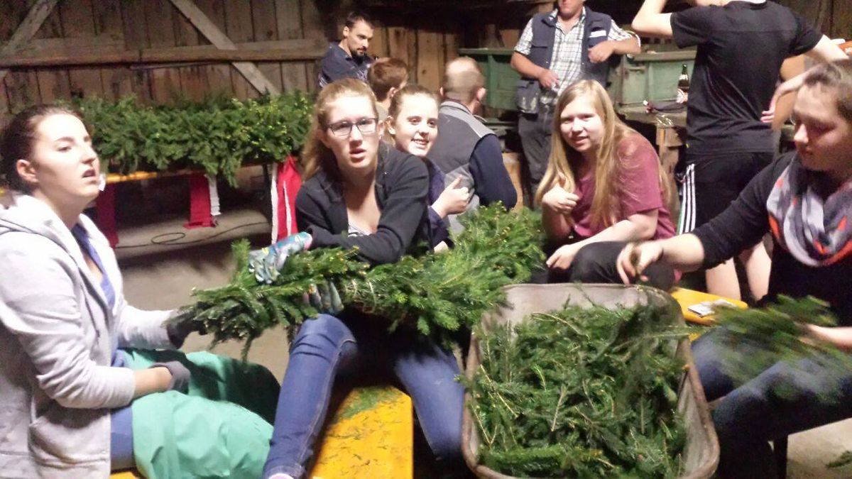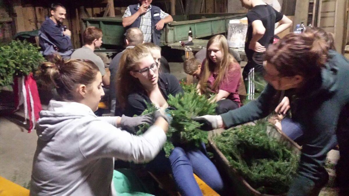 Kranz flechten für den Maibaum